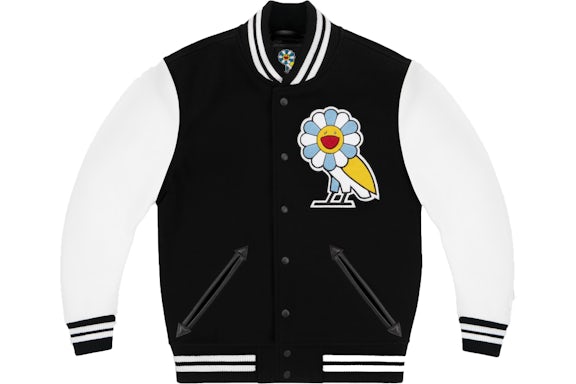 It comes in black and white design. The jacket has a bold unique look. Soft fabric makes it very comfortable. Murakami’s artwork adds a creative touch. The OVO owl logo looks premium. This jacket is great for street fashion.The Takashi Murakami x OVO Varsity Jacket Black/ White is stylish. It suits casual and trendy outfits. The snap-button front offered at takashi murakami shop gives a classic feel. Ribbed cuffs make the fit perfect. It is a collector’s dream piece. Fans love its artistic collaboration style. This jacket stands out in any crowd. It is warm and easy to wear. The blend of brands is exciting. It is a limited edition item.