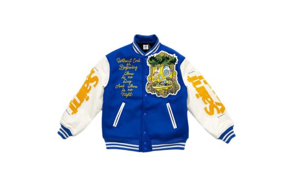 This jacket blue is a stylish addition to any streetwear collection. This jacket offers a comfortable fit for everyday wear. It features vibrant colors and unique designs that stand out in any crowd. The jacket is lightweight yet durable, perfect for layering during colder seasons. Saint Mxxxxxx x Takashi Murakami Stadium Jacket Blue includes high-quality fabric that feels soft against the skin. Its modern design pairs well with jeans or casual pants. The takashi murakami shop offers jacket is easy to maintain and can be worn for multiple occasions. You can style it with sneakers or boots for a complete look. It is suitable for both men and women who love fashionable outerwear. The bright blue color adds a fresh touch to any outfit. Its long-lasting design ensures it remains a wardrobe favorite. Ideal for streetwear fans who appreciate bold colors. This jacket is a perfect mix of comfort and style.